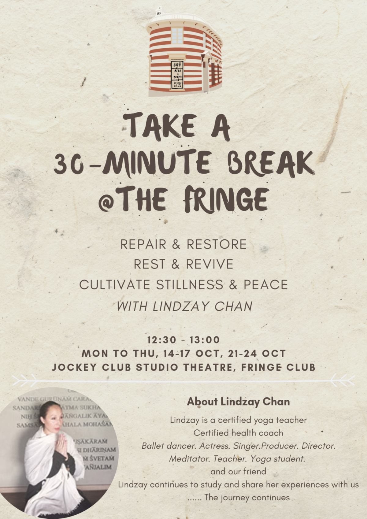 Join Lindzay Chan for 30 minutes to cultivate stillness and peace!