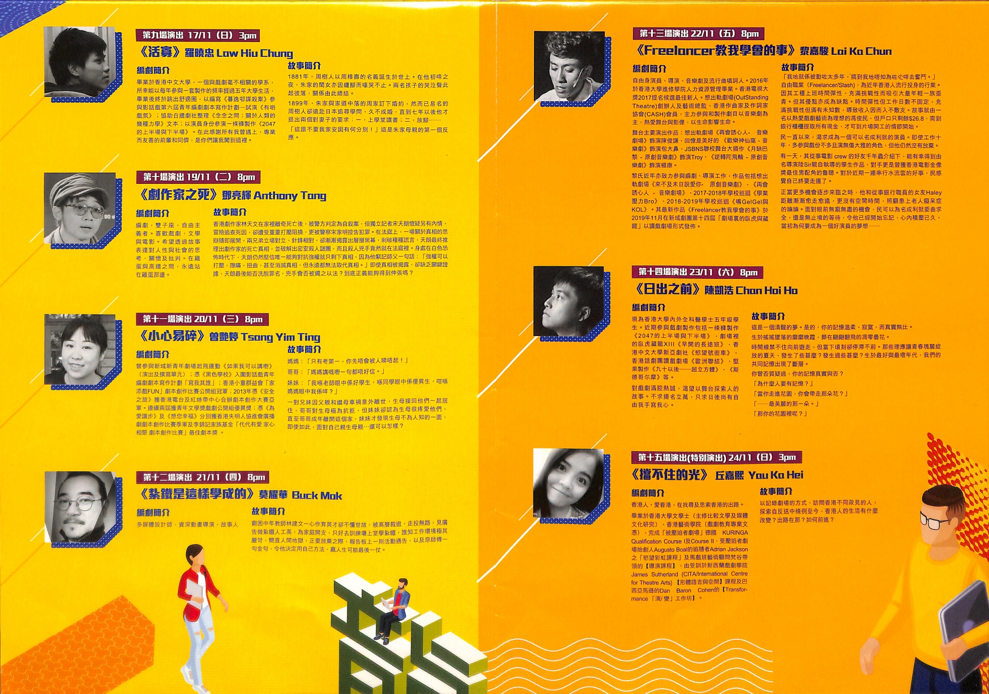 自2006年創辦至今,「劇場裏的臥虎與藏龍計劃」已邁進第十四年。今年,十五位編劇,一人一劇,與你分享十五個故事。