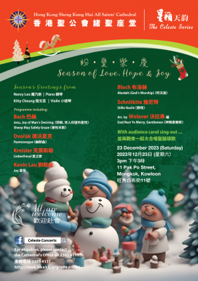 As an active chamber musician, Cheung is also a founding member of “Contrast”, the only professional violin-saxophone-piano trio in Hong Kong. Besides performing in regular concert settings, she often gives educational workshops, including the Chamber Tots series at Wigmore Hall in London. She had also given masterclasses at the Hong Kong Baptist University and the Lakes Area Chamber Music Festival in the USA.