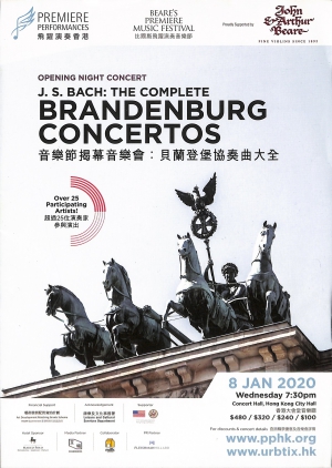 揭幕音樂會「貝蘭登堡協奏曲大全」2020年1月8日(星期三) 晚上8時,提早至同日晚上7時30分演出。