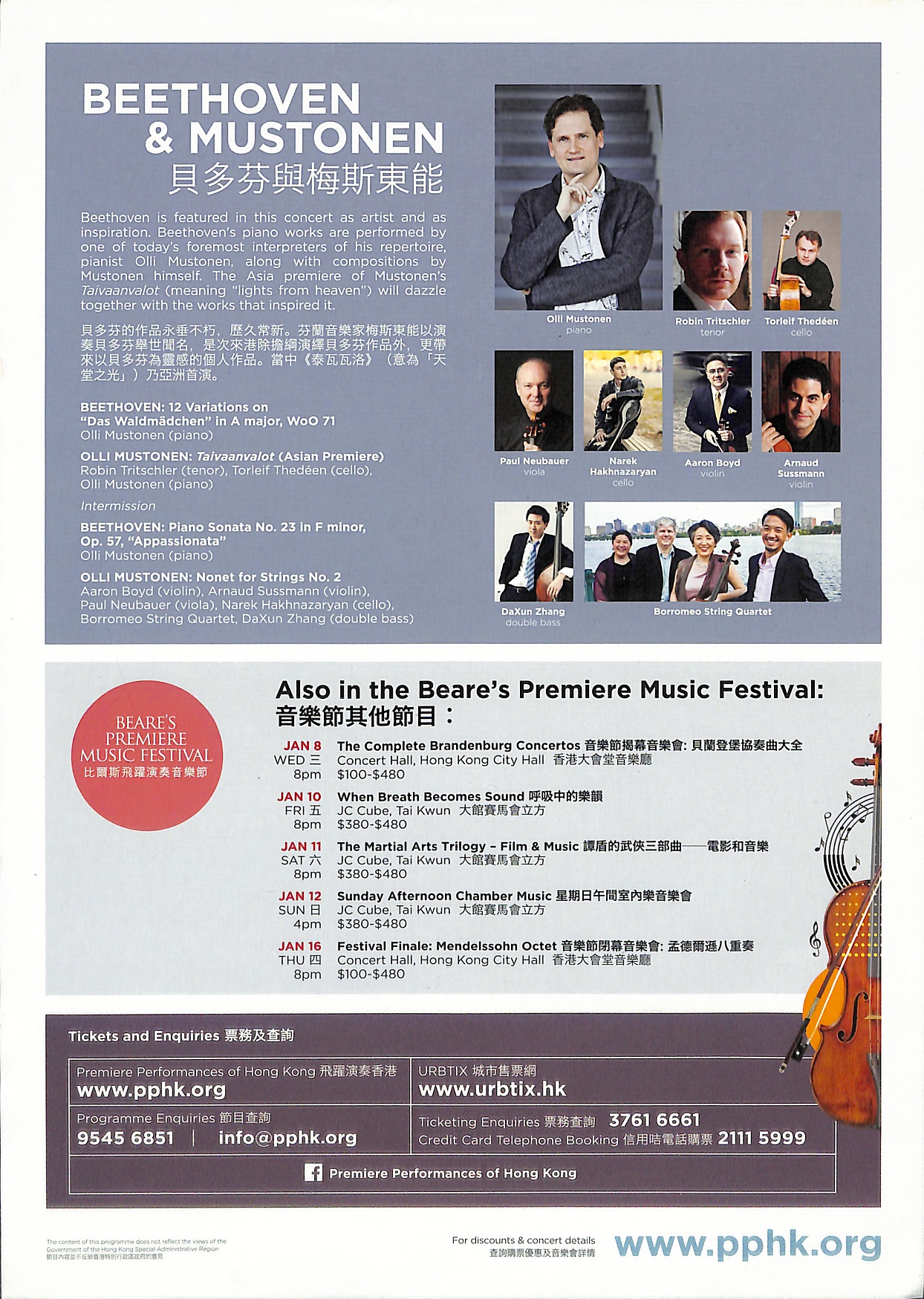 貝多芬與梅斯東能2020年1月14日(星期二) 晚上8時,提早至同日晚上7時30分演出。