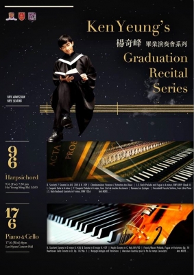 Kenneth holds a B.A. in Music with First-Class Honours (majoring modern cello) from The Chinese University of Hong Kong, an M.M. in Historical Performance from the Oberlin College and a D.M. in Early Music - Historical Keyboards from the Indiana University, with Music Theory as doctoral minor. His outstanding performance in doctoral qualifying exam received a special commendation from his advisory committee. Currently, Dr. Yeung works as a harpsichord instructor in The Chinese University of Hong Kong.