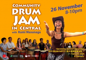 日本敲擊樂手 增永紅實 和齊鼓樂團隊將為大家提供非洲鼓和各類敲擊樂器,當然也可自備。請提早到場,座位和樂器都是先到先得,不設預留的。