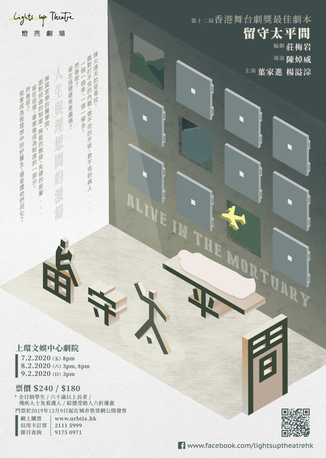 <<留守太平間>>為第十二屆香港舞台劇獎最佳劇本,2002年由中英劇團首演,是次演出為全新製作。