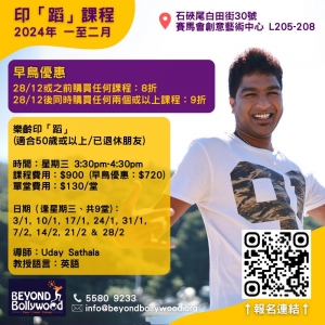 慈善團體BEYOND Bollywood創立於2015年,透過印蹈舞蹈演出、工作坊、音樂舞蹈劇、電影、舞蹈教育和以舞蹈介入社會的實驗,以多元文化、平等、尊重和包容的理念連結文化,突破界限,成就卓越、具前瞻及影響力的跨界別藝術交流平台。