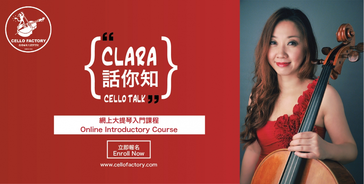 「CLARA 話你知」網上大提琴入門課程 適合無接觸過大提琴訓練或有其他音樂或樂器訓練的初學者,歡迎喜愛大提琴的12歲或以上人仕參與。導師採用精選的教材及實習令學員掌握坐姿、握弓、弓速、長弓、重量發音等基本演奏技術及概念。
