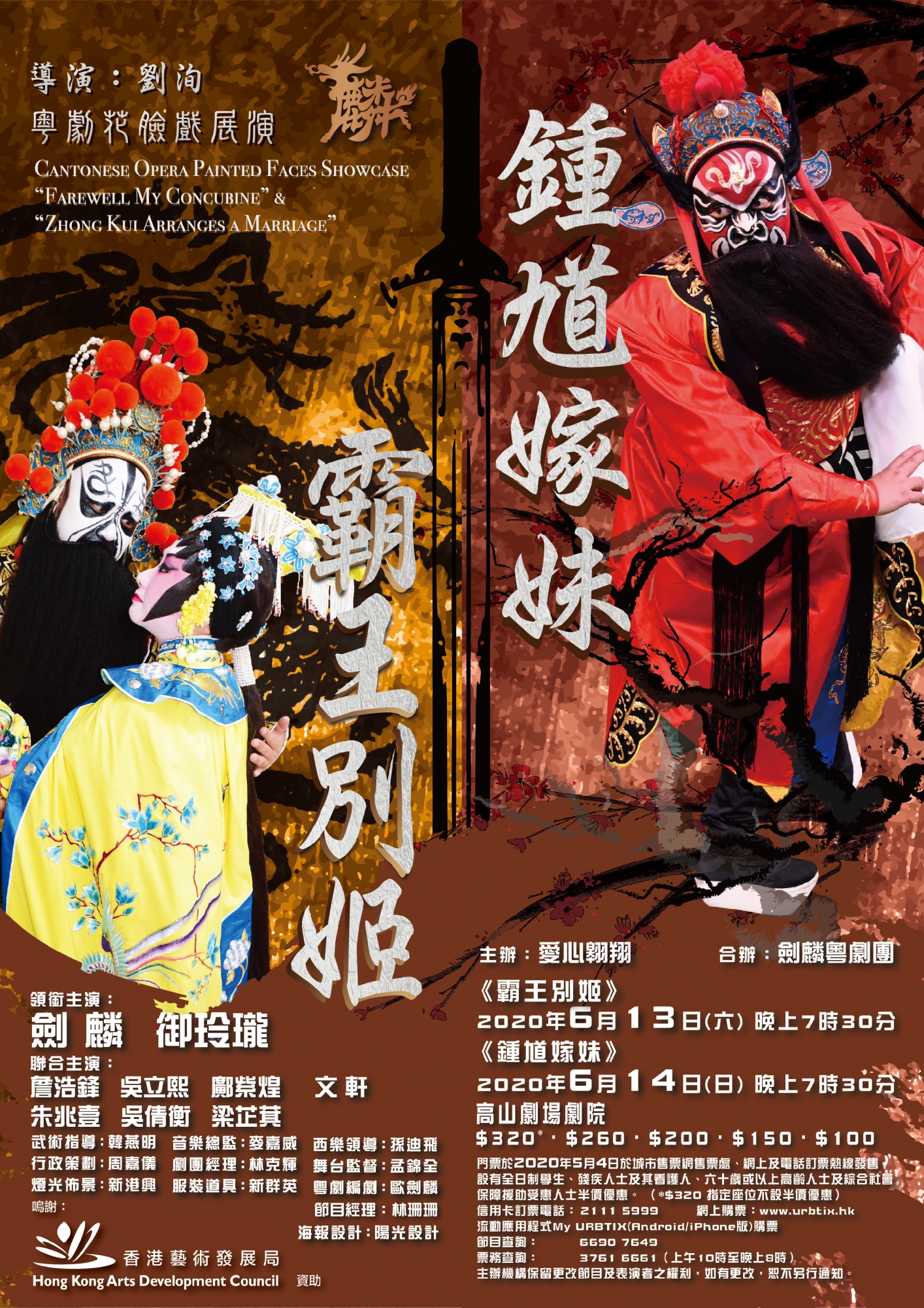 《霸王別姬》以京劇最負盛名,是京劇「四大名旦」之首——梅蘭芳大師的經典名劇,飾演虞姬的他與多個霸王演出,包括勾臉的武生楊小樓和淨角的金少山,以〈別姬〉一折膾炙人口,讓旦角佔盡鋒芒。粵劇《霸王別姬》是2018年「第46屆香港藝術節」的重點項目,由尤聲普與羅家英分飾霸王,演的是上世紀九十年代由葉紹德編撰的版本,韓信和蕭何佔的戲份不少。嚴格來說,兩個劇種都沒有讓霸王「當家作主」。劍麟看過了尚長榮主演的同名3D(三維)電影,再向劉洵老師請教,認為可以用京劇《霸王別姬》為基礎,改編成一齣以霸王為中心人物的版本。由於劇情所限,全劇只有一位旦角——虞姬,故十分切合「劍麟粵劇團」的演員組合。此劇於2018年首演,可惜因為只演一場,許多地方未臻完美,故再請劉洵老師執導重排,務求更進一步提升全體演員的演出。