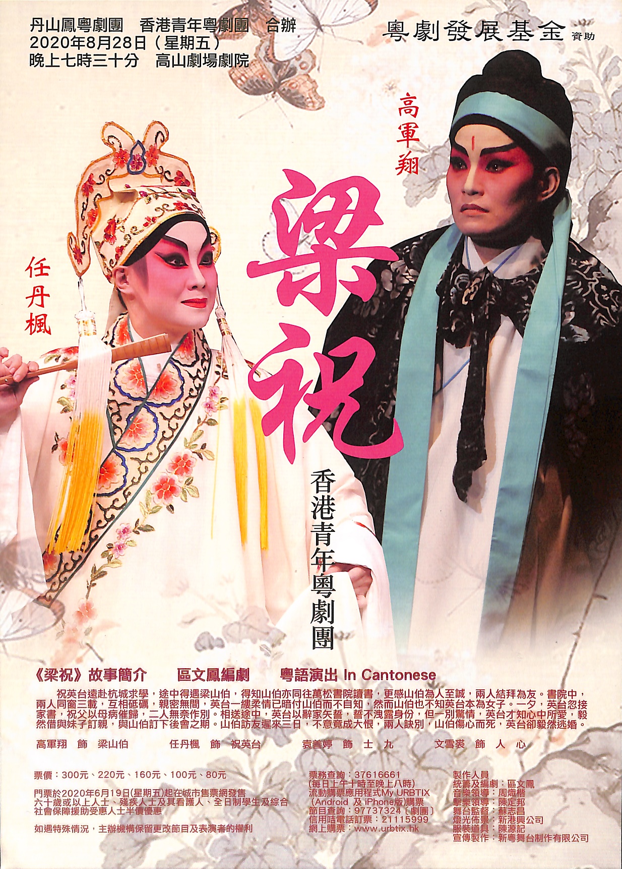 祝英台遠赴杭城求學,途中得遇梁山伯,得知山伯亦同往萬松書院讀書,更感山伯為人至誠,兩人結拜為友。書院中,兩人同窗三載,互相砥礪,親密無間,英台一縷柔情已暗付山伯而不自知,然而山伯也不知英台本為女子。一夕,英台忽接家書,祝父以母病催歸,二人無奈作別。相送途中,英台以辭家矢誓,誓不洩露身份,但一別驚情,英台才知心中所愛,毅然借與妹子訂親,與山伯訂下後會之期。山伯訪友,遲來三日,不意竟成大恨,兩人訣別,山伯傷心而死,英台卻毅然逃婚。