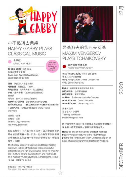 聖誕節快到,小不點已急不及待,滿心歡喜地決定要在這佳節慶祝一番。於是,他向香港管弦樂團請求帶他和朋友仔展開一場奇妙的音樂冒險。嗎哩嗎哩空,出發!符錫《角鬥士入場進行曲》哈察都量《嘉妮亞》:劍舞柴可夫斯基《胡桃夾子》:花之圓舞曲李察‧史特勞斯《狄爾愉快的惡作劇》