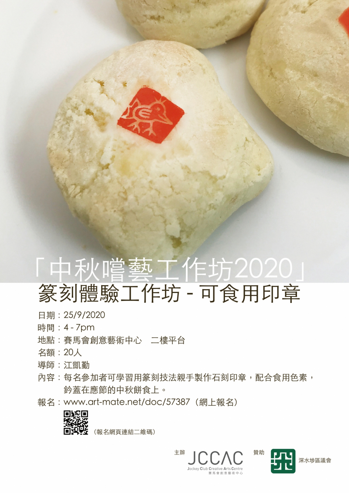每名參加者可學習用篆刻技法親手製作石刻印章,配合食用色素,盡情鈐蓋在家中應節的中秋餅食上。