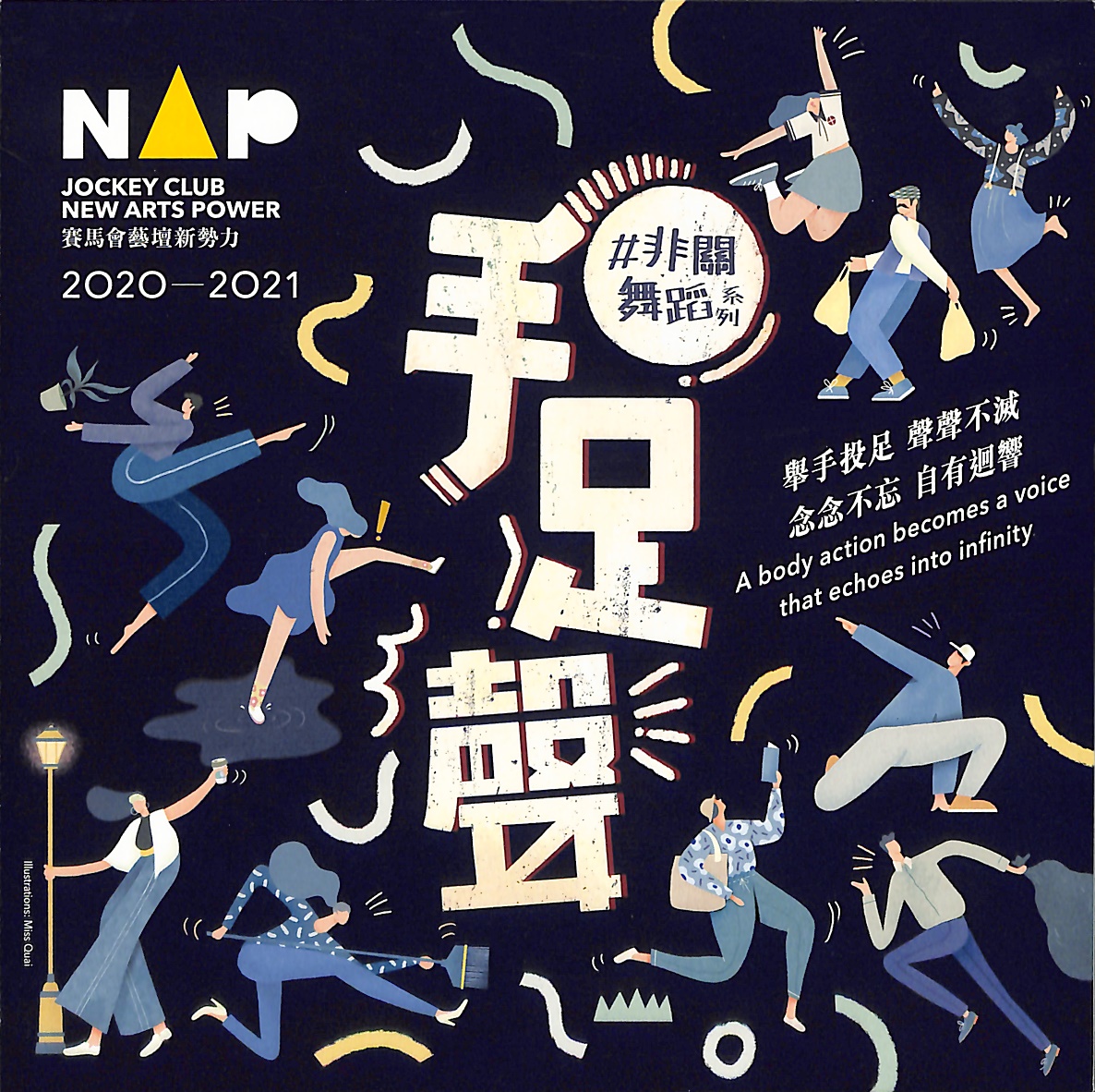 念念不忘 自有迴響一舉手一投足,所發之聲,必有共鳴。用日常為引,發掘身體舞動本能,回歸本源。不加鎖舞踊館近年來以「#非關舞蹈」為重點研習方向,著重由身體出發,發掘身體律動的可能性和享受當中帶來的樂趣,致力向公眾推廣人人皆可舞動的理念。演出讓三十位不同背景的素人與專業舞者,拋開身份,跳出框框,以舞蹈連繫社區。是次「#非關舞蹈」三場公眾參與演出中,首兩場演出將安排參加者與舞團藝術家同台演出。最後一場由舞者擔演,再續未完之《聲》——《聲♯》。