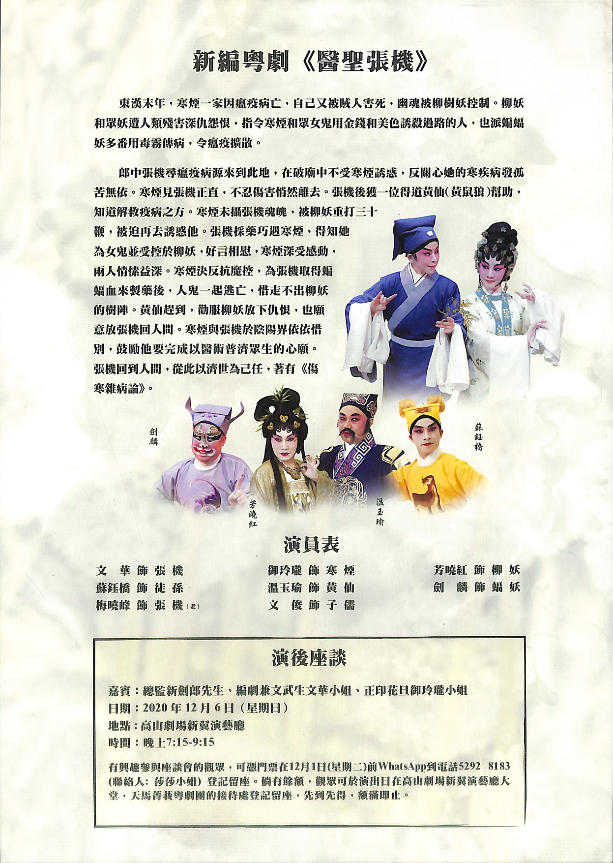 東漢末年,寒煙一家因瘟疫病亡,自己又被賊人害死,幽魂被柳妖控制。柳妖指令她用金錢和美色誘殺過路的人,也派蝙蝠妖多番向人間播毒,令瘟疫擴散。郎中張機尋瘟疫病源來到此地,在破寺中不受寒煙誘惑,更獲一位得道黃仙幫助,知道解救疫病之方。寒煙得張機開解被人害的心結,決反抗妖魔。柳妖亦聽黃仙勸說,放下仇恨,也答應放張機回人間。寒煙與張機於陰陽界依依惜別,鼓勵他要完成以醫術普濟眾生的心願。張機回到人間,從此以濟世為己任,著有《傷寒雜病論》。