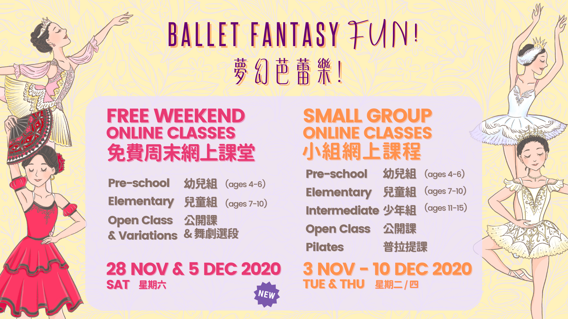 無論您身處何地,都能參與這個免費直播的芭蕾舞課程!香港芭蕾舞團的專業導師將根據不同大小的居家空間調整古典變奏和編舞,讓大家安在家中和我們一起舞動!導師會重點教授古典芭蕾舞技巧,著重舞步的自然和流暢度,讓大家透過溫馨的網上課堂提升技巧、耐力與藝術氣質。