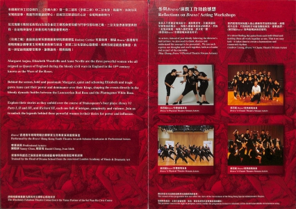 《玫瑰之戰》由倫敦音樂及戲劇藝術學院戲劇總監Rodney Cottier來港執導,歷屆Bravo!香港青年劇場獎勵計劃畢業生及專業演員傾力演出,演繹三位女皇的心路歷程。經典莎劇活現香港舞臺,長近一世纪的英國歷史戰爭,誰勝誰負,即將揭曉!