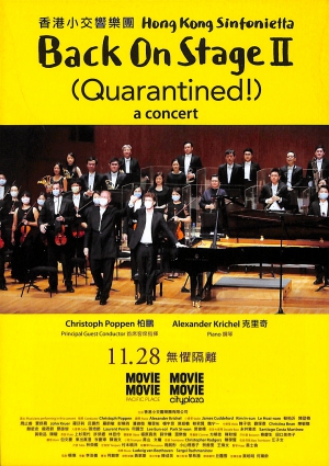 香港小交響樂團的首齣音樂會電影「Back On Stage」 叫好叫座,數度加場,樂團以極速姿態呈獻「Back On Stage II (Quarantined!)」,對比起上一次只有弦樂組成員,這次以完整交響樂團編制上陣,包括來自木管、銅管、豎琴及敲擊樂共61位樂師。