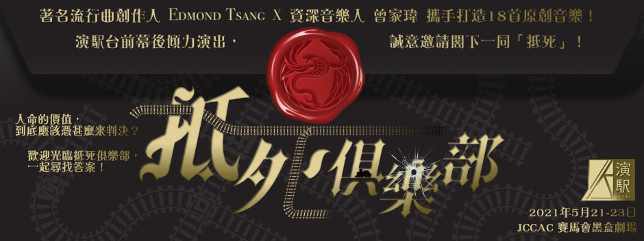 演駅原創音樂劇《抵死俱樂部》著名流行曲創作人 Edmond Tsang x 資深音樂人 曾家瑋,攜手打造18首原創音樂!演駅台前幕後傾力演出,誠意邀請閣下一同「抵死」!人命的價值,到底應該憑甚麼來判決?一個神秘俱樂部的豪華派對,一夜疑幻似真的驚悚遊戲;一場人性價值與道德的審判,一次生死存亡的困獸鬥……是殺人,還是救人?是犧牲,還是救贖?誰的性命才更重要?誰又只不過是死有餘辜?歡迎光臨「抵死俱樂部」,一起尋找答案!