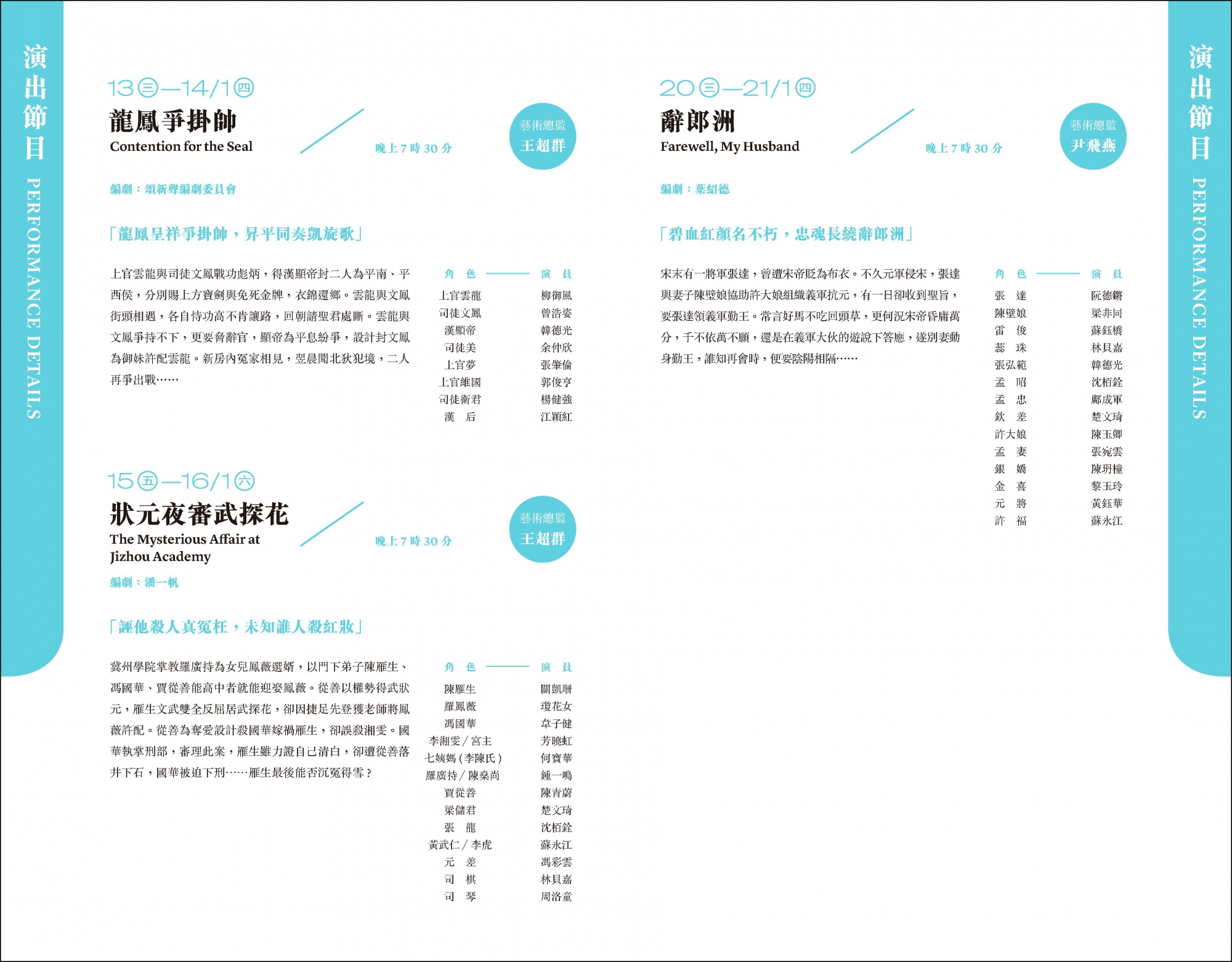 1) 演期五(1月20至21日之《辭郎洲》、1月22至23日之折子戲專場)