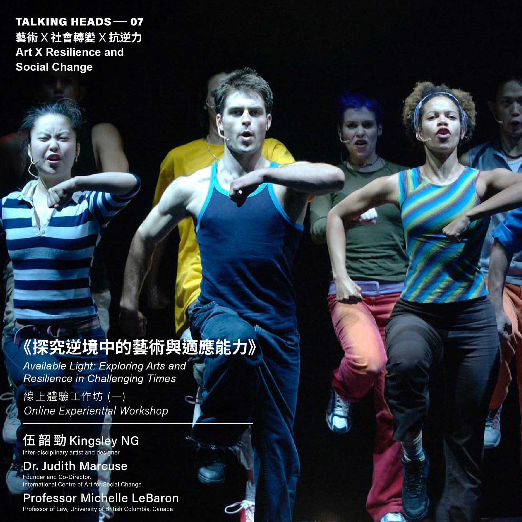 第七場《文化按摩師:Talking Heads》—「藝術 X 社會轉變 X 抗逆力」由香港跨領域藝術家伍韶勁、加拿大藝術及社會創業領袖Michelle LeBaron教授及Judith Marcuse博士策劃。他們將進行一系列的藝術體驗,回應當下社會不安與浮躁的情緒,以藝術與眾人一同療傷解困。