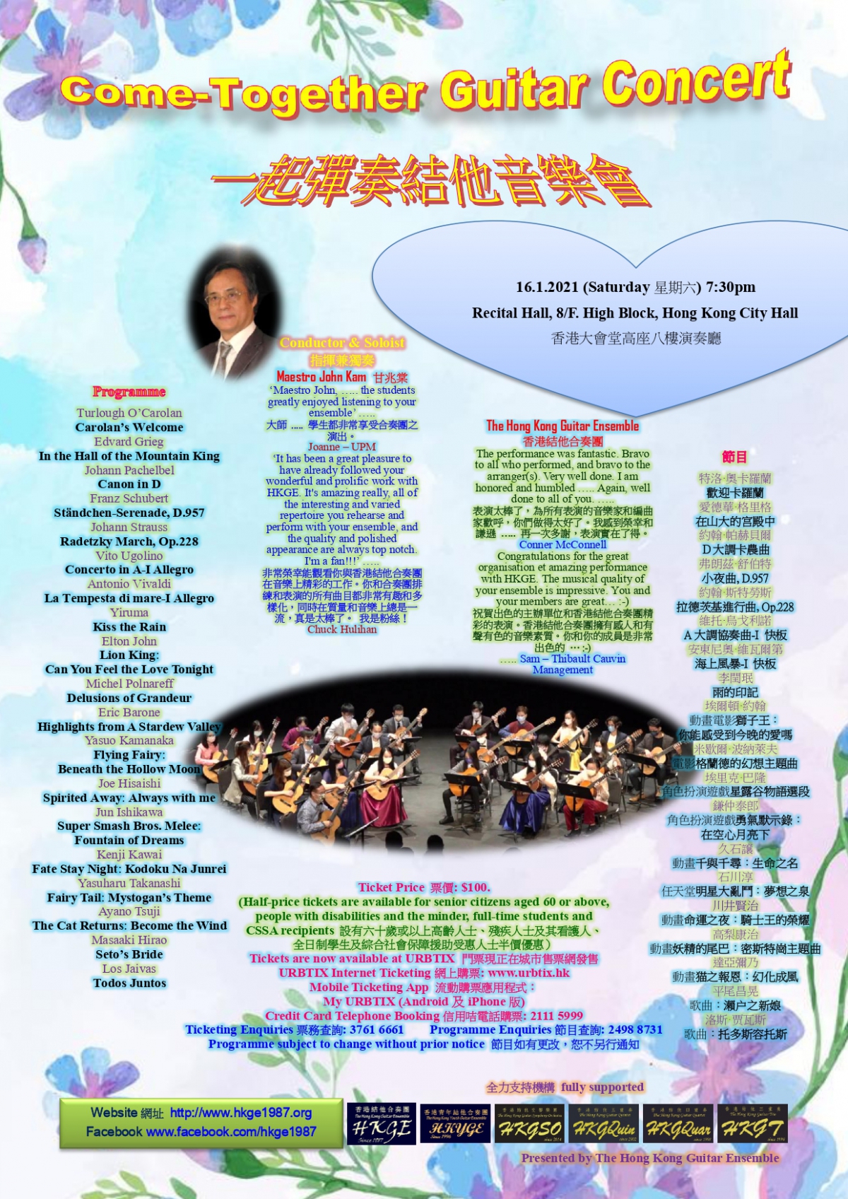 希望是次音樂會的選曲〈古典化美妙動聽的樂章〉和編曲〈交響化發展的發展方向〉能讓大家在聆聽音樂時更加容易引起我們平日急需的各種激情,以誘發內在的潛力,讓我們感到樂觀、快慰、聰慧和自信。