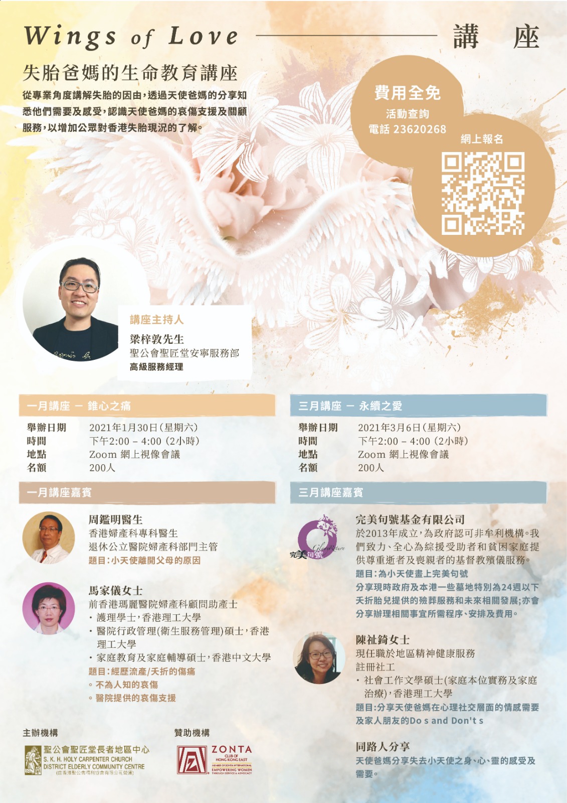 從專業角度講解失胎的因由,透過天使爸媽的分享知悉他們需要及感受,認識天使爸媽的哀傷支援及關顧服務,以增加公眾對香港失胎現況的了解。