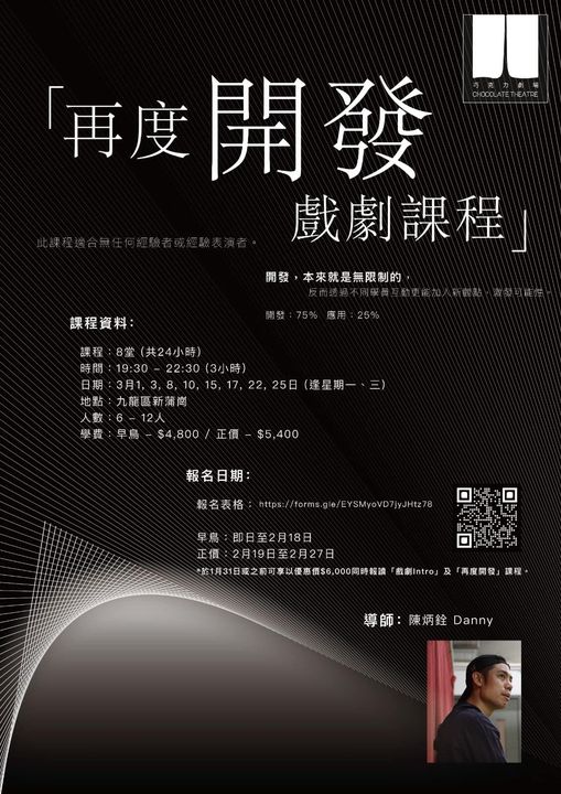 *早鳥期間可享以優惠價$6,000同時報讀「戲劇Intro」及「再度開發」課程。