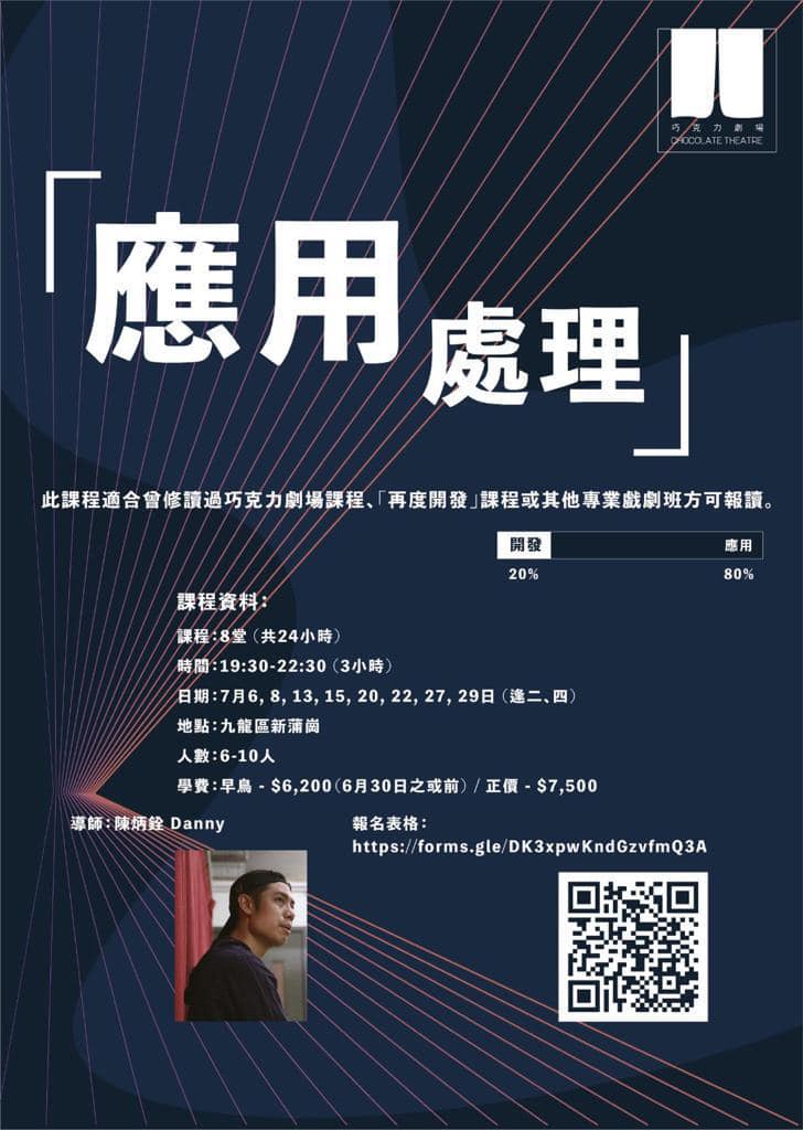 ** 「應用處理」課程適合曾修讀過巧克力劇場課程、「再度開發」課程或其他專業戲劇班方可報讀。