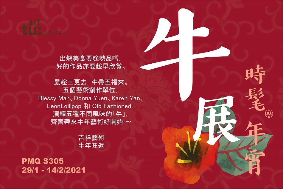 出爐美食要趁熱品嚐,好的作品亦要趁早欣賞。鼠趁三更去,牛帶五福來。五個藝術創作單位,Blessy Man、Donna Yuen、Karen Yan、LeonLollipop 和 Old Fazhioned,演繹五種不同風味的「牛」,齊齊帶來牛年藝術好開始 ~吉祥藝術牛年旺返