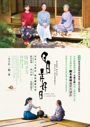 日本國寶級女星樹木希林遺作,改編自茶道教授森下典子的《日日是好日─茶道帶來的十五種幸福》。對前途一片迷茫的大學生典子(黑木華 飾),半推半就跟表姐美智子(多部未華子 飾)向嚴謹的武田老師(樹木希林 飾)學習茶道。典子最初對茶道一無所知,卻慢慢體會到「先形後心」、「負重若輕」等道理。茶道默默陪伴她渡過多回春夏秋冬,經歷了人生各重要階段,她逐漸領略到茶室牆上字畫 「日日是好日」的真正含意。人雖已走,茶卻不涼,樹木希林最後向我們送上一碗洋溢人生哲理的溫暖好茶,餘韻無窮。