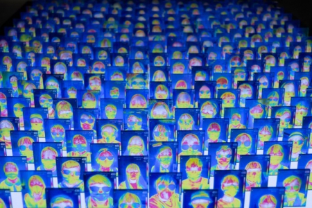 在所有商店餐廳入口之前,我們都會被系統地量度體溫,乖乖奉上我們的生物數據。蕭偉恒從中得到靈感,以探熱槍拍攝一系列大頭相,莫名地令人聯想起Alphonse Bertillon替一眾無政府主義罪犯拍攝的犯人照。那輯具爭議性的照片,後來逐漸發展成當代罪犯面部識別的系統。