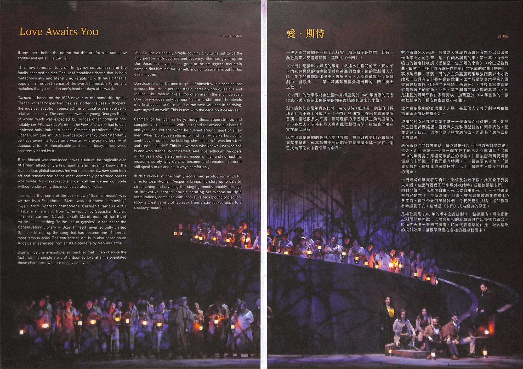 完美糅合了西班牙的熱情及法國的詩情,《卡門》是一個高舉自由、解放,交織著命運與激情的長青故事–一個酷愛自由不願受任何束縛的傳奇女子;一個甘願被她束縛的男人;一個渴望能為他解除束縛的女人。美妙的旋律配上激昂節奏,繞梁三日,教人念念不忘。