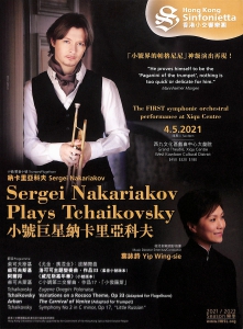 小號巨星納卡里亞科夫有「小號界中的帕格尼尼」之美譽,其令人嘆為觀止的造詣、音色柔美圓潤的演奏風靡全球,而且他是絕無僅有能夠把柔音小號帶上舞台作為獨奏樂器的音樂家。這次來港他在21天強制隔離檢疫後,與香港小交響樂團一起連演兩首分別為柔音小號及小號改編的作品,包括由納卡里亞科夫父親為他改編的柔音小號版本──柴可夫斯基的洛可可主題變奏曲和阿爾邦的《威尼斯嘉年華》小號版本,想見證神級演奏,萬勿錯過這場首個於戲曲中心大劇院舉行的管弦樂節目!