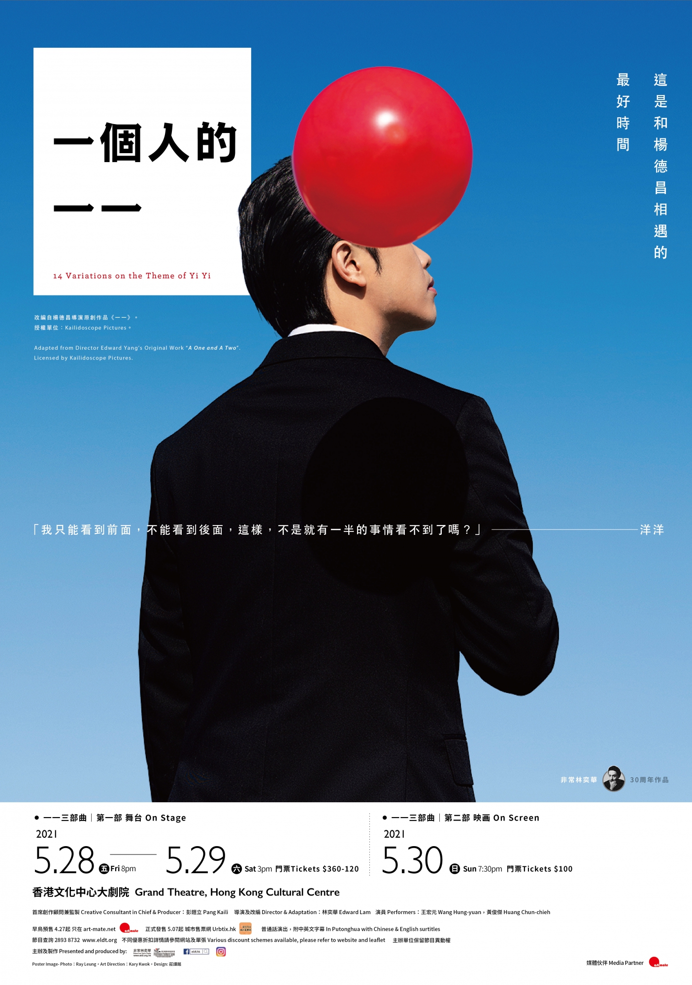 感謝各位支持,《一個人的一一》(舞台版) 早鳥預訂已滿,將5月7日 於 URBTIX 公開發售,詳情請留意FACEBOOK 更新