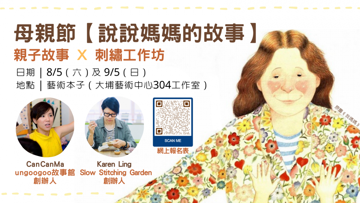 Karen則會以一雙巧手示範傳統刺繡的簡易針法,讓孩子透過一針一線,繡出獨具特色的刺繡胸針,做為禮品送給媽媽🎁,更從小小的針線中感受大大的愛!(特別歡迎爸爸們帶孩子來參加!)