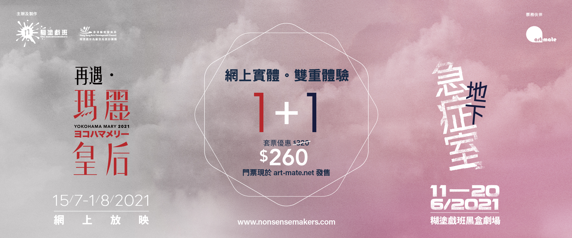 糊塗戲班推出套票優惠,一次過送上兩齣最新作品—《地下急症室》及《再遇.瑪麗皇后》,展開荒誕超現實之旅,又能細味重新演繹及拍攝的經典作品﹗