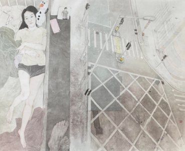 疫情讓人類生活的轉變,杜氏此次的創作從疏離的街道、異化的工作模式,以及停頓的狀態中攝取靈感。《假期》,不僅是指疫情期間停頓的狀態,亦指人類因被迫脫離日常工作及生活,反而擁有更多獨處的自省時間,並重新以好奇眼光再次審視世界。此次展出的十件水墨作品,獨顯當代水墨的精緻面貌。