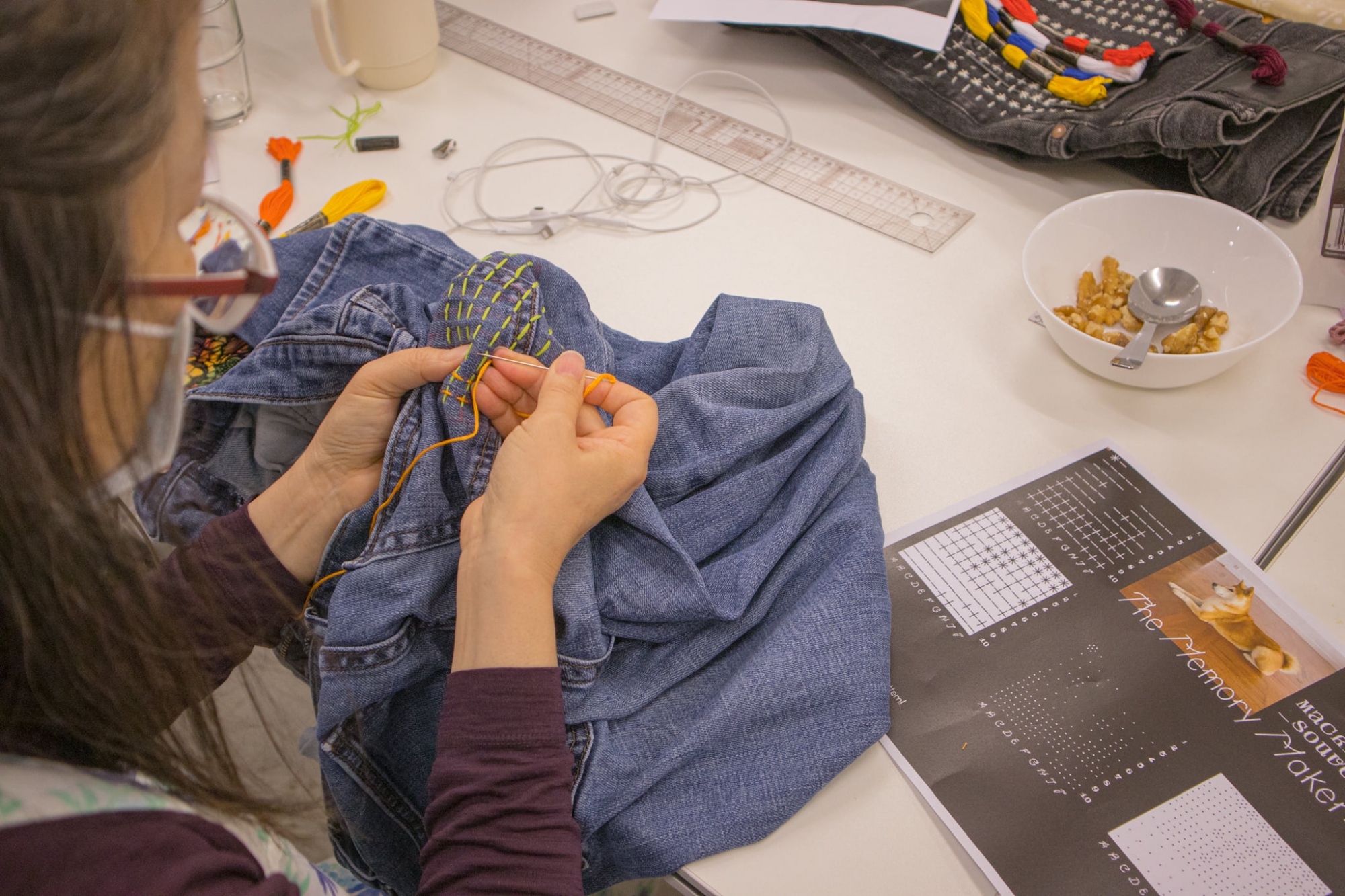 工作坊中你可以攜帶一張記念性的圖像,並利用一個由藝術家設計的電腦程序轉化為程式語言。當中共有四個樣式,它們將成為繡花針跡。你的圖像將因而成為你獨特作品的刺繡圖樣。藝術家隨後將教授刺繡技巧,將生成的圖樣轉移至舊布料上。刺繡方式是一種傳統的日本刺繡技巧「刺子」,平時主要用於修補,主要由幾何圖樣組成。