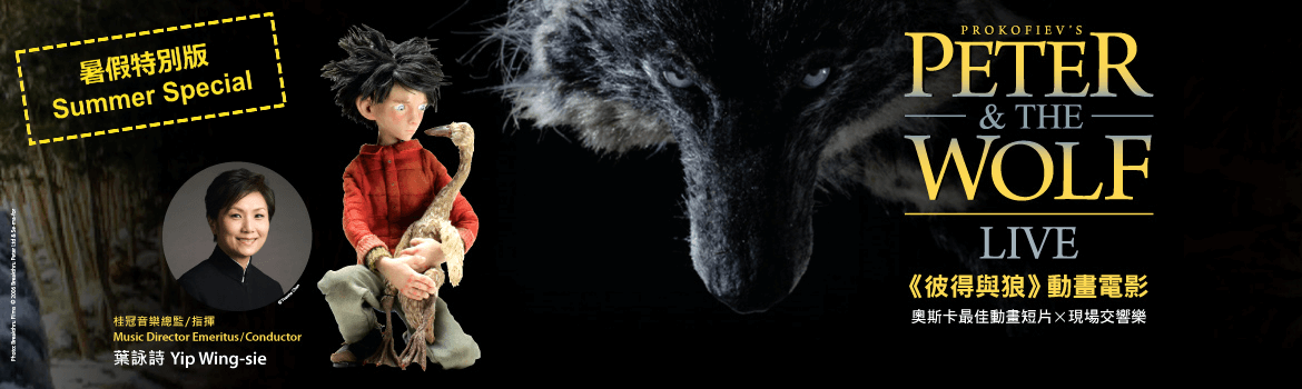 由英國導演譚芭頓打造,製作歷時五年,以真模型單格拍攝,故事取材自俄羅斯作曲家浦羅哥菲夫作品的《彼得與狼》動畫電影,橫掃2008年奧斯卡最佳動畫短片及2007年法國安錫國際動畫影展大獎。香港小交響樂團於2007年把亞洲首映帶來香港,結合現場演出,一票難求,樂團今年重新獲得授權重演,由桂冠音樂總監葉詠詩指揮,以音符說故事,把現場古典音樂演奏與電影觀賞體驗再度結合昇華,絕對不容錯過!