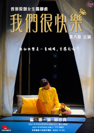 2021 八度載譽重演一個關於怎樣走下去的故事 一部關於尋找不快樂的獨腳戲假如快樂是一隻蝴蝶,它還好嗎?劇中主角Noel Tsang,工作至上致力傳授「快樂竅門」,自命不凡生活講究,是傲慢,是挑剔,卻是大部分人眼中成功獨立的時代女性。一天意外誤闖前男友婚宴,十年年月已蹉跎,終於要坦誠面對自己,毅然啟動尋找快樂之旅 ——原來快樂不快樂,不過是一種自覺。編、導、演:林珍真