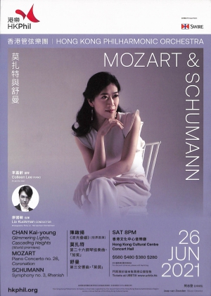 香港鋼琴家李嘉齡將為莫扎特的「加冕」鋼琴協奏曲施展魔法,這首第二十六鋼琴協奏曲是繼第二十一鋼琴交響曲之外,最常被演奏的莫扎特鋼琴交響曲之一。舒曼與他同為音樂家的妻子克拉拉喜愛往萊茵河畔旅遊,第三交響曲不止追憶往昔的美好,更向科隆致敬。為音樂會打開序幕的是《流光疊巘》的世界首演,出自香港作曲家陳啟揚手筆,他希望樂曲能燃點希望。