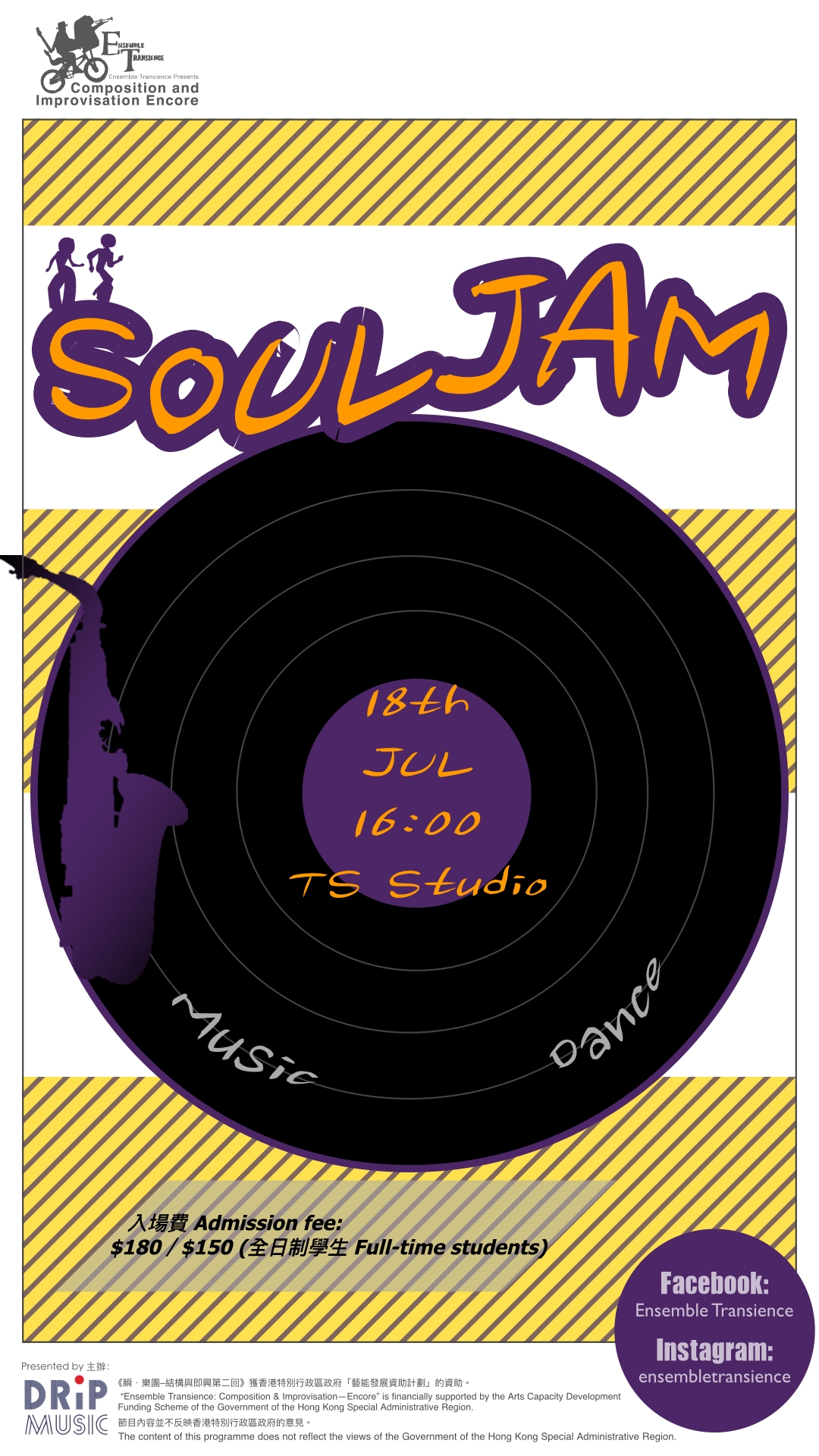 工作坊將舉行分享和交流環節,由爵士結他手及作曲家張駿豪(Teriver Cheung)淺談爵士樂的發展和即興演奏的特色。是次活動亦邀請到風格多元的本地舞蹈單位Jose & Kayi、Strangers和TS Crew,與爵士樂隊ET & Elliott共同示範演出。工作坊更會向美國長青音樂綜藝節目《靈魂列車》(Soul Train)致敬,於最後環節開放舞台,在現場樂隊演奏下,歡迎所有參加者一同soul jam!