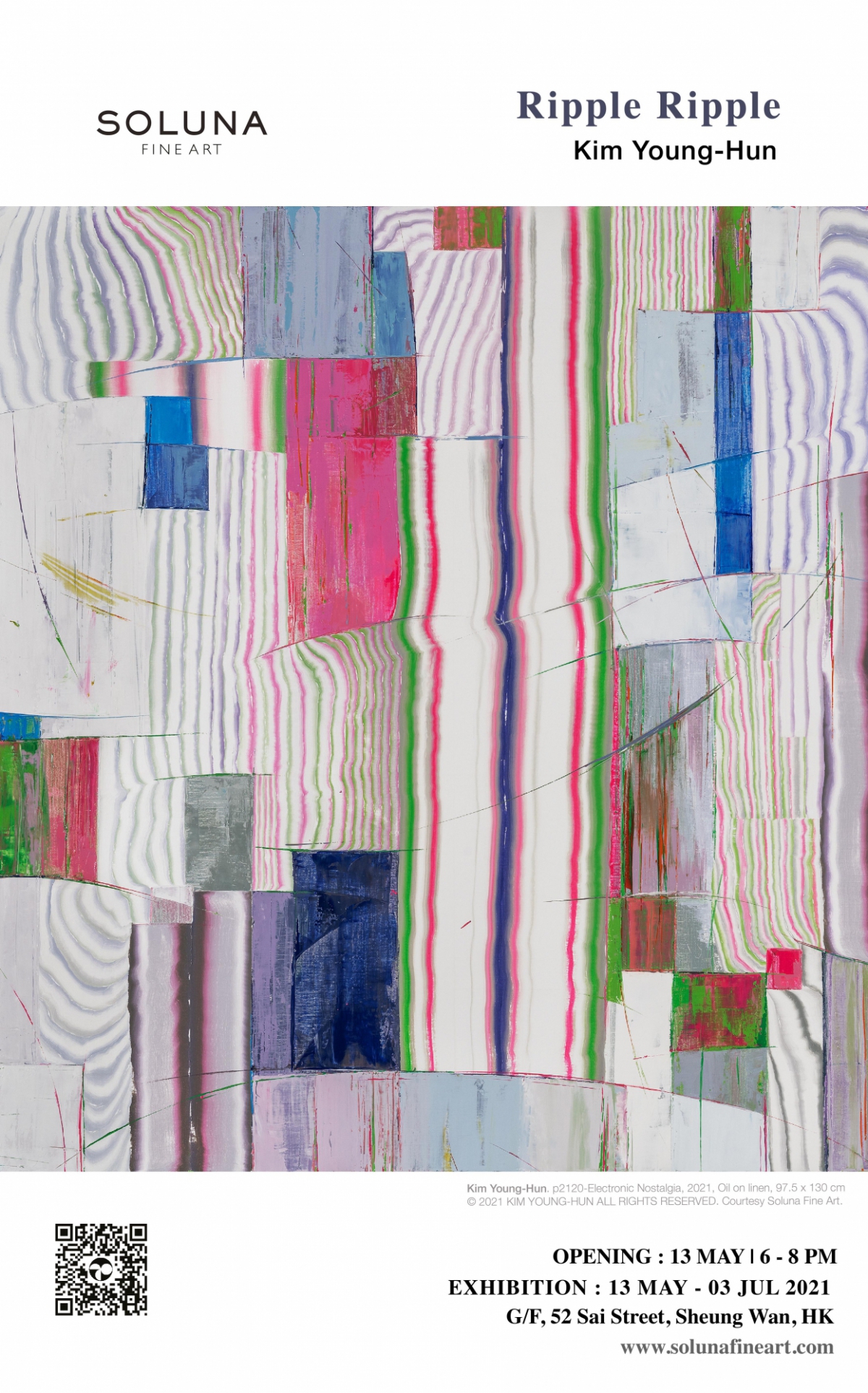 Soluna Fine Art 欣然呈獻金永憲全新個人展覽「漣漣」。是次展覽將展示金氏從不斷變遷的數碼世界中獲得啟發而創作的超過十件嶄新油畫作品。「漣漣」展覽會由二零二一年五月十三號至七月三號 在畫廊展出,並於五月十三號晚上六至八點開幕。