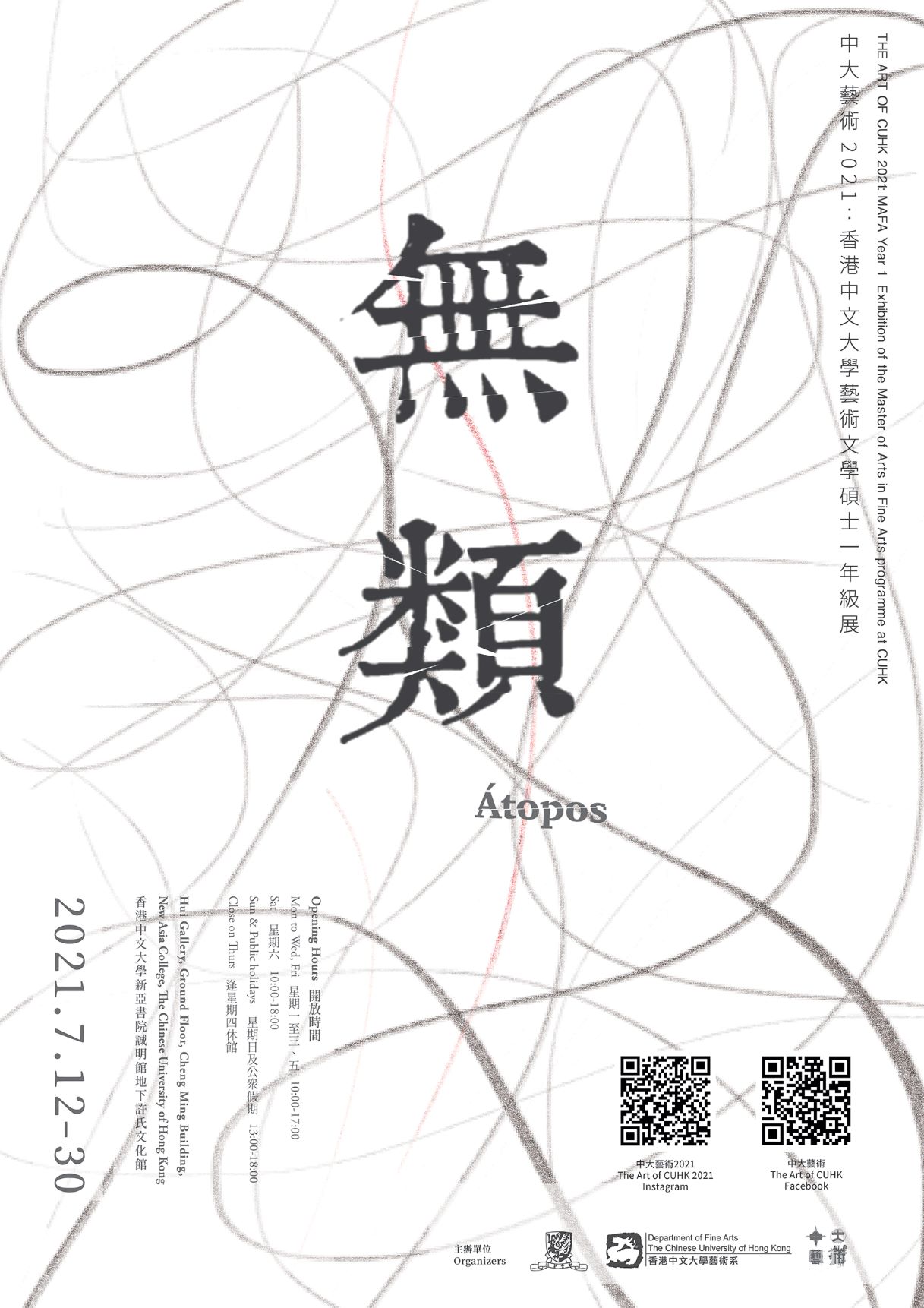 展覽以「無類」為名,象徵著在藝術文學碩士班的學習過程中,展現鮮明的個人特色和氣質,進而在藝術道路上互相切磋與啟發,共進同益。「無類 Átopos」一詞出自蘇格拉底的辯論對手。他們所形容的蘇氏:陌生、荒誕,且不可歸類。羅蘭・巴特在《戀人絮語》中如此描述戀人的關係:對方總是無比獨特。或許這 17 位學子的相遇亦是如此,不能被歸類,不能與任何東⻄作比較;在探索藝術的過程中,他們戰戰兢兢,又互相滋養。他們的關係是非理性的、不可言喻的精神感受。