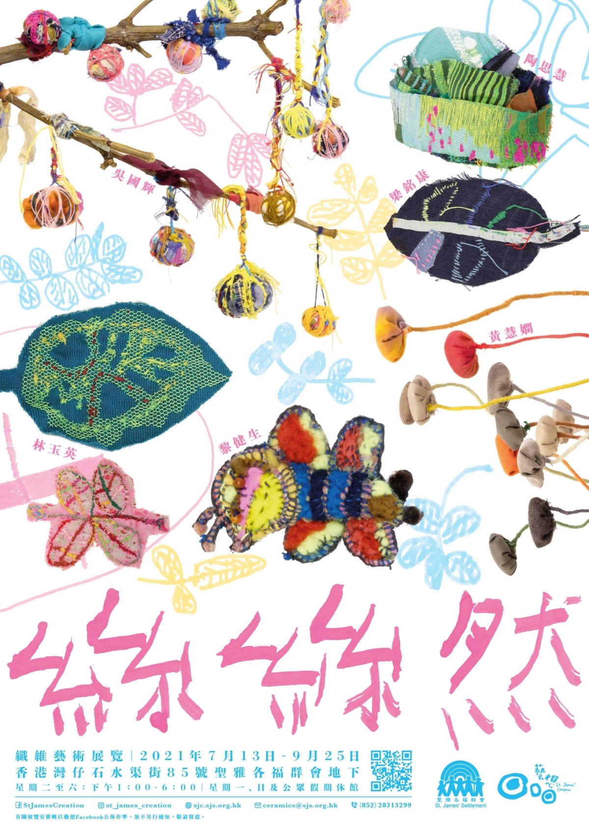 一針一線 漫遊自然一圈一圈 經歷一層一層 發現一天一天 創作 絲 絲 然藝想嘗試以不同的工藝手法,去探索纖維素材,透過創作人的多方面體驗與發現,豐富作品的內容及呈現方式。「絲絲然」纖維藝術展覽始於六位創作人在疫情期間的修煉歷程,包含了他們對大自然的發現、聯想與連繫。一針一線抅畫,一層一層堆疊,漫遊在紗線中,分享閑情裡一片一片的風景。