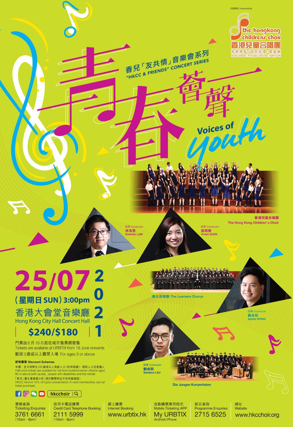 音樂會上,年輕指揮孫明慧及林浩恩,將帶領「香兒」Concert Choir團員演出多首精選曲目和世界首演作品。同時,亦邀得兩隊分別由「香港合唱指揮比賽」冠軍黃日珩、亞軍劉卓熙帶領的合唱團同場獻唱。攜手為觀眾送上高水準演出,展現年輕合唱世代的新動力!