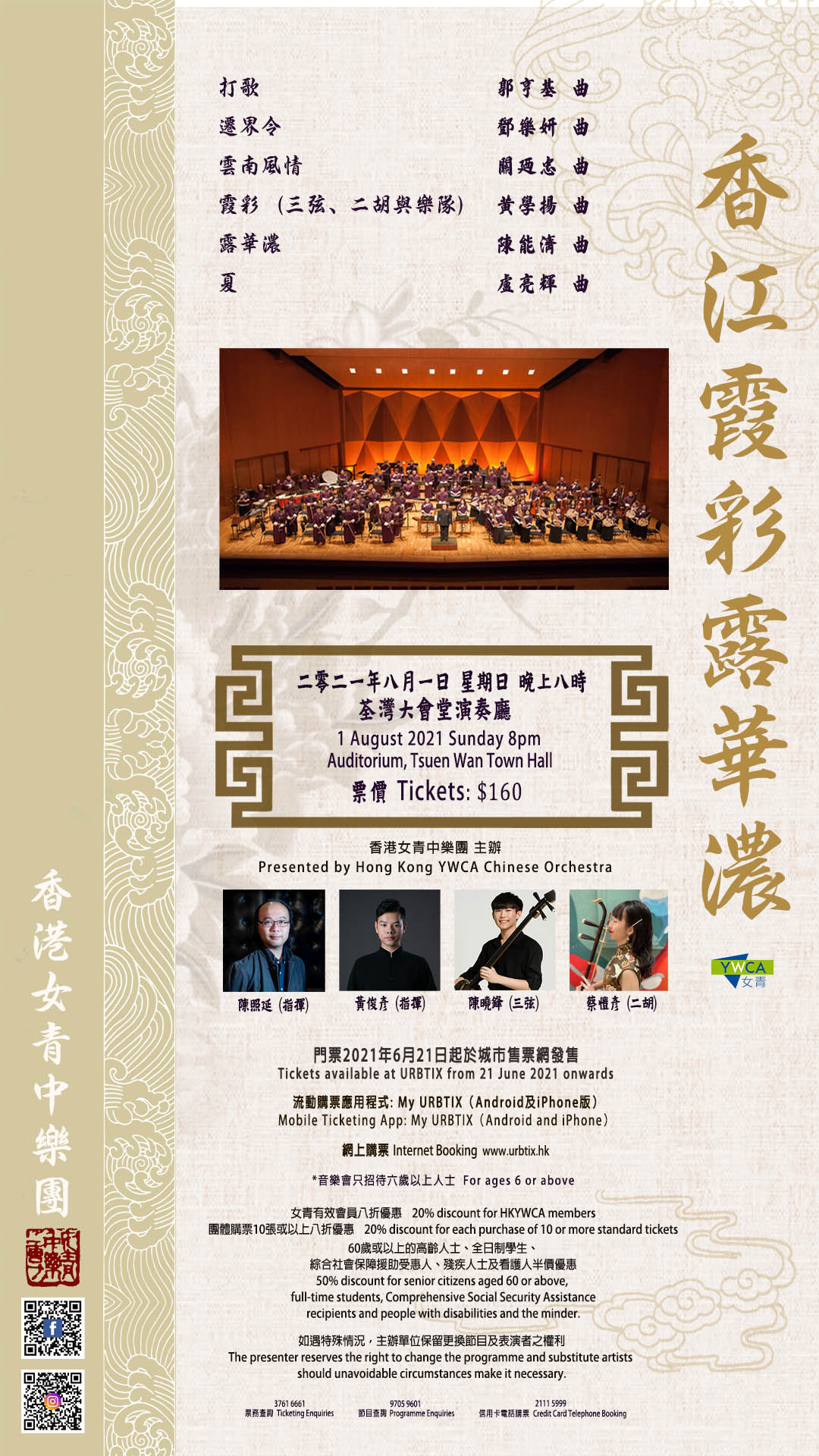 香港作為一片創作靈感福地,孕育出不少經典作品。是次音樂會將會演奏與香港富有淵源的作曲家的作品,包括:關廼忠《雲南風情》、郭亨基《打歌》、陳能濟《露華濃》、黃學揚《霞彩》、鄧樂妍《遷界令》及盧亮輝《夏》。樂曲或描寫香港、或抒發作曲家對少數民族的情感,當中亦有受詩詞啟發而寫成的樂章。作品意境鮮明、旋律動聽。是次音樂會亦邀請了樂評人於場刊內就演出作品撰寫樂評,希望觀眾除了能從精選作品當中享受音樂,亦能從多角度認識香港的中樂作品。