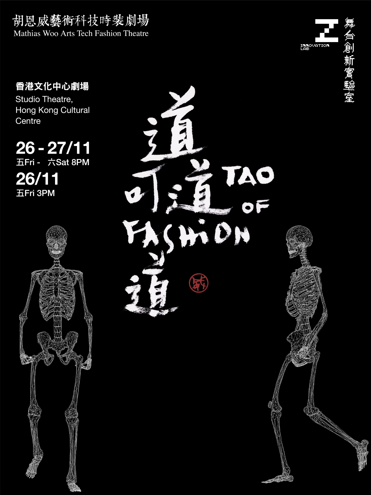 《道可道Fashion道》,取《道德經》第一章「道可道,非常道」 (The Way that is speakable is not the constant Way) 的義與名,以「非」一般的「道」來展示 Art Tech Fashion Show ,把時裝與「道」不斷變化發展的本質、人與科技的互動, 在劇場中結合表演、音樂、書法、動態追蹤技術 (motion capture) 與數碼人偶等元素來展示。
