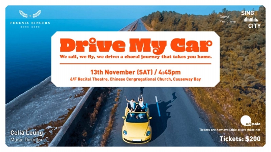 After almost 2 years, together with Phoenix Singers and guest performer Sing City, musical director Celia Leung will bring you an afternoon of choral works about journeys. Featuring music of The Beatles ("Drive My Car"), folk song "Poor Wayfaring Stranger"; we will also take you to the sky, "Leaving On a Jet Plane", then lead you "Home" (from musical The Wiz), and "Take Me Home" (by Pentatonix).