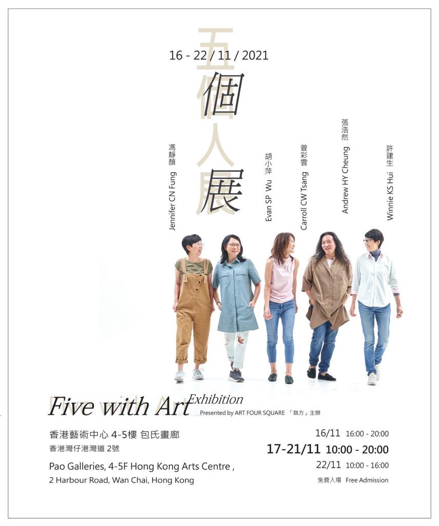 「五個人展」,由五位水墨藝術家許建生、胡小萍、張浩然、馮靜顏、曾彩雲首次聯袂策劃。顧名思義,這是五位藝術家各自的個人展覽,也是他們聚焦於「個體」的展覽。五批作品,不約而同地被藝術家自況為在這三年間所積累的「功課」,是他們藉持之以恆的藝術創作形式,探討個體面對由日常與無常形成的新常態的自我對話記錄。而他們為是次展覽特別構思的裝置作品,更注重對個人創作特色的積澱、改良、發掘,甚至擴充,在展覽此一共有時空形態中,向公眾開放出由身經體遇所切問經聚的脈象形態。