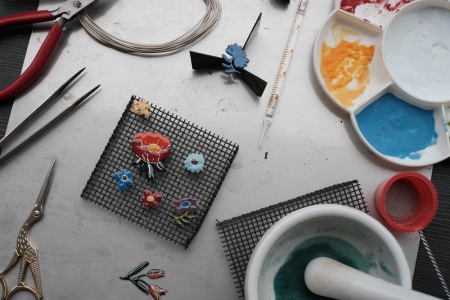 參加者可以使用我們提供的來自畫中的花元素,創作出富有當代感的工藝品首飾。
