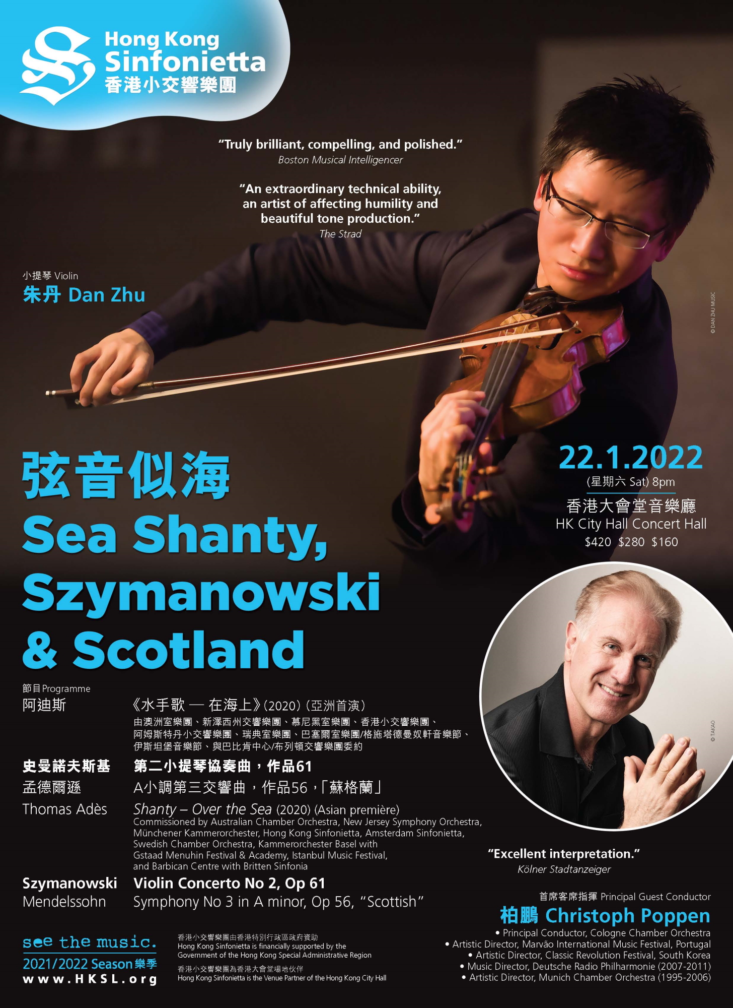 另外, 香港小交響樂團聯同十個海外樂團及國際音樂節,委約英國著名作曲家阿迪斯的新作品,《水手歌 – 在海上》,並為此作品亞洲首演。創作靈感來自水手的頌唱,從開頭的撥弦和弦開始,通過多個微妙的主題變換,以弦樂衝破起伏不定的浪花。音樂會壓軸的是孟德爾遜的著名《蘇格蘭》交響曲,帶您遨遊丘陵平原。